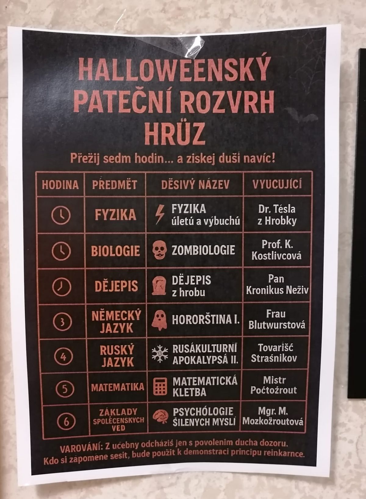 Dne 31. 10. 2022 se gymnazisté rozhodli pojmout výuku netradičně neboli v tradičním anglosaském stylu v duchu halloweenském.