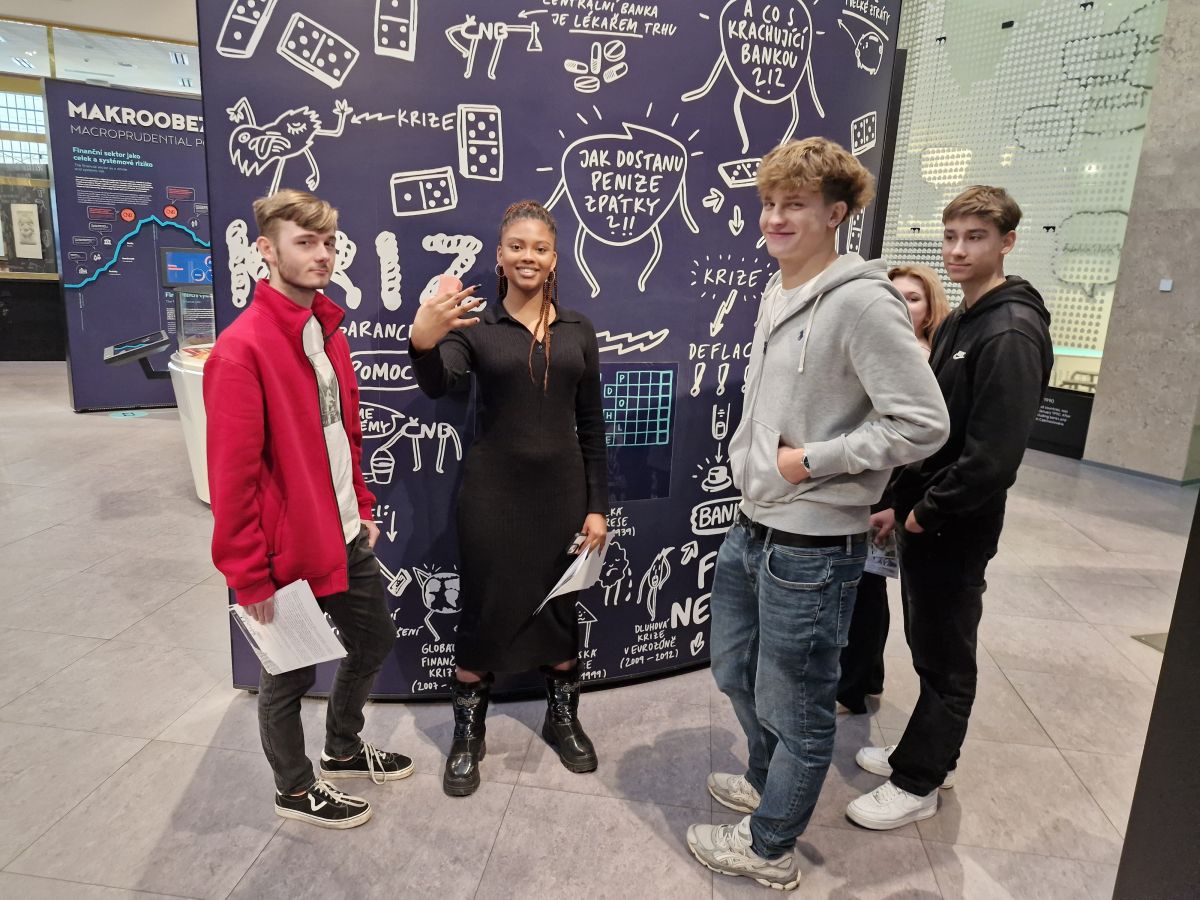 Ve čtvrtek 6. 11. vyrazila třída III.G objevovat taje České národní banky. V ranním bloku se žáci zúčastnili workshopu Peněžní oběh a platební styk, kde si vyzkoušeli záludnosti výměnného obchodu, diskutovali o výhodách a nevýhodách bezhotovostní platby či jak obezřetně zacházet s penězi na internetu. Odpoledne pak následovala prohlídka expozice Lidé a peníze, kde se dozvěděli zajímavosti o vývoji peněz v historii.