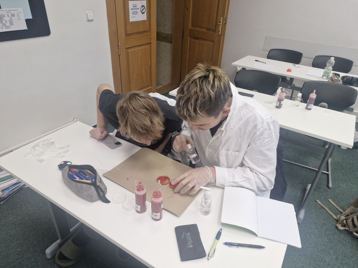 V první hodině praktik si studenti mohli vyzkoušet určování krevní skupiny, na druhé hodině potom zájemci pitvali reálné prasečí srdce.