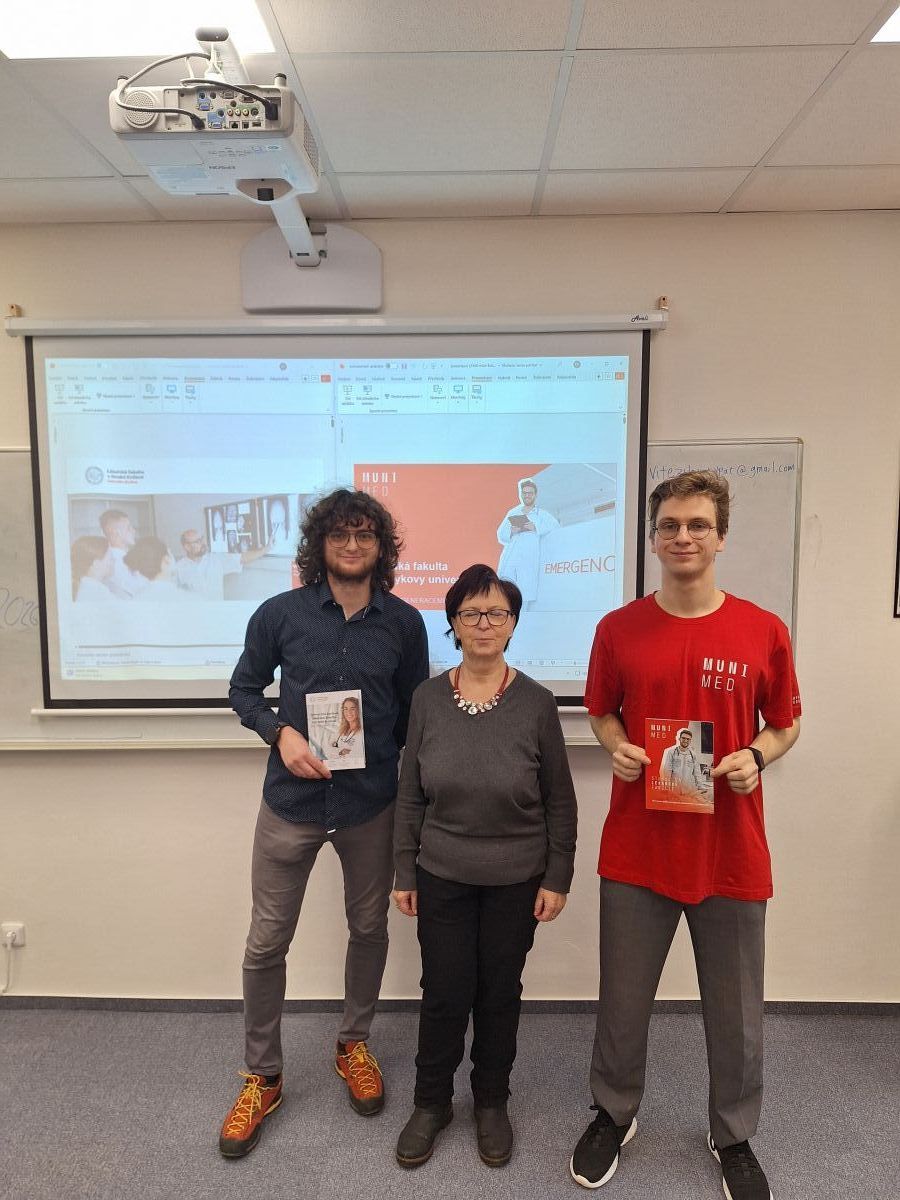 Dne 13. 2. 2026 se uskutečnila beseda se zástupci lékařských fakult Univerzity Karlovy a Masarykovy univerzity. Naši žáci měli možnost blíže poznat jaké to je být studentem těchto univerzit - jejich medicínských oborů, více pronikli do běžného života studenta, ale i poznali, co obnáší se na lékařské obory vůbec hlásit. Debata se uskutečnila v příjemné atmosféře, kdy se žáci dozvěděli mnoho zajímavých informací.